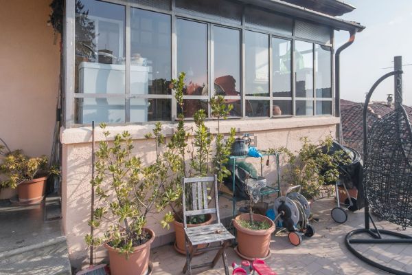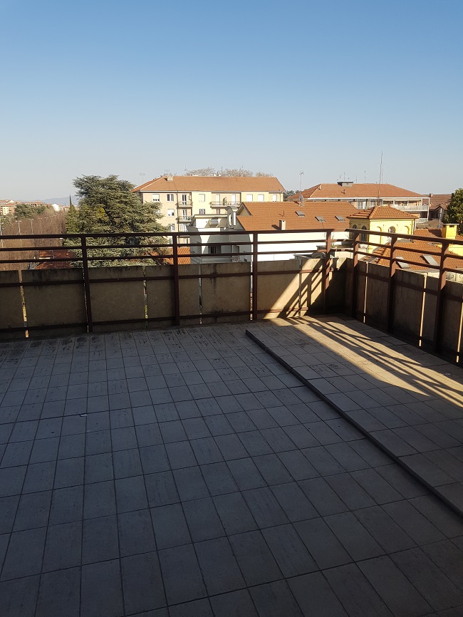 Dal soggiorno si accede direttamente ad uno splendido terrazzo di circa 80 mq con vista panoramica su tutta la città di Torino e dal lato opposto sul castello e collina di Rivoli.