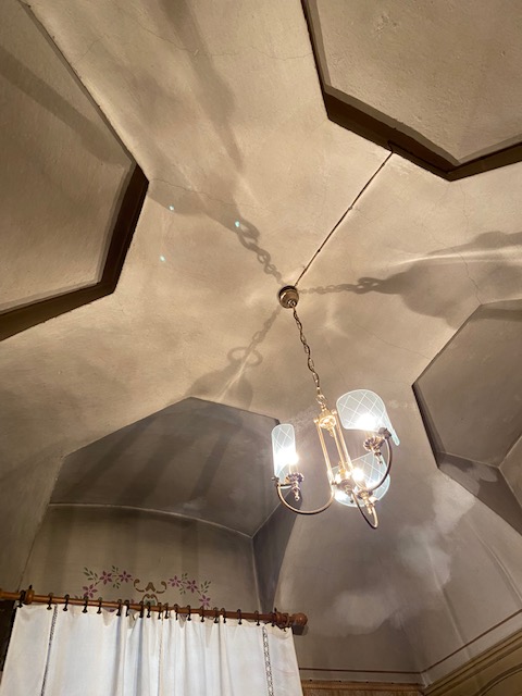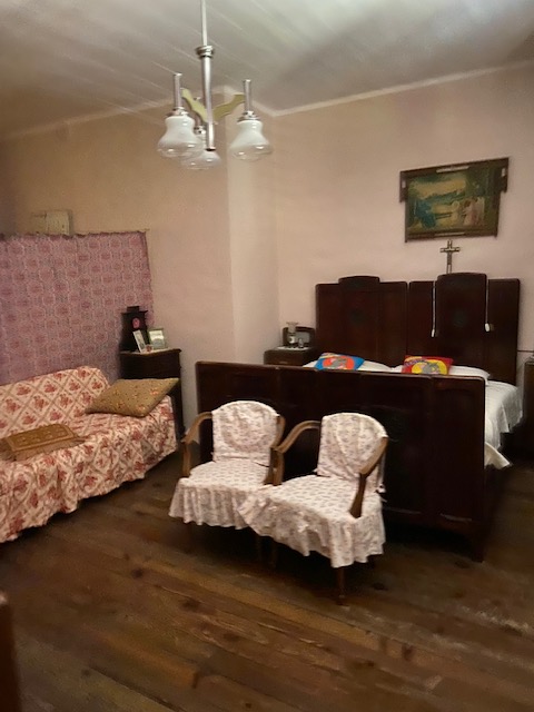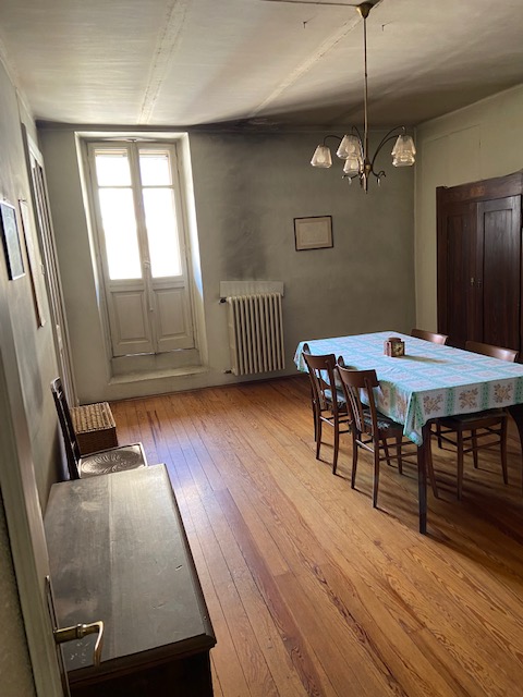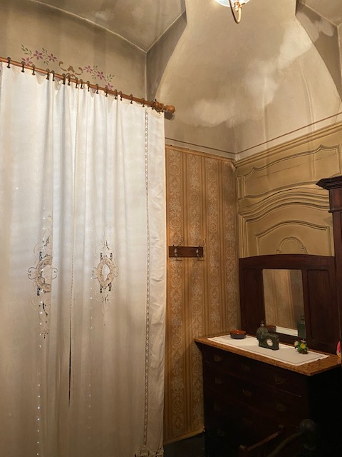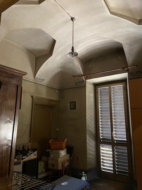 Al primo piano troviamo un ampio appartamento con doppio ingresso, al tempo uno dei due veniva utilizzato dalla servitù, le camere hanno soffitti alti e decorati e pavimenti in legno ancora in ottimo stato e cotto lucidato a cera. Le porte in legno sono anch’esse originali dell’epoca della costruzione. Ovviamente il primo piano necessità di un restauro, più che di una ristrutturazione, ma questo lo deciderà il fortunato acquirente.
